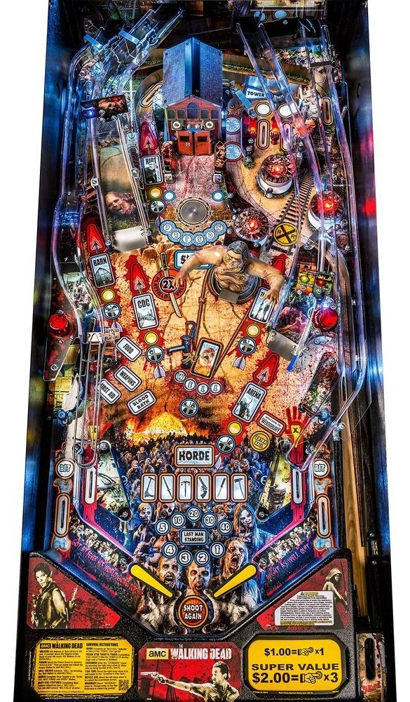 Ce flipper, qui reprend fidèlement l’ambiance de la série, propose au joueur de se glisser dans la peau d’un survivant avec le shérif adjoint Grimes et ses compagnons d’infortune. Prenez les armes pour abattre les rôdeurs disséminés sur le plateau de jeu !