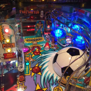 Ce flipper vintage en excellent état ravira les collectionneurs nostalgiques avec ses illustrations colorées et ses mécaniques de jeu dynamiques. Il reproduit l’ambiance sonore d’un stade et vous serez même accompagné par un commentateur personnel pour encourager vos plus belles actions.